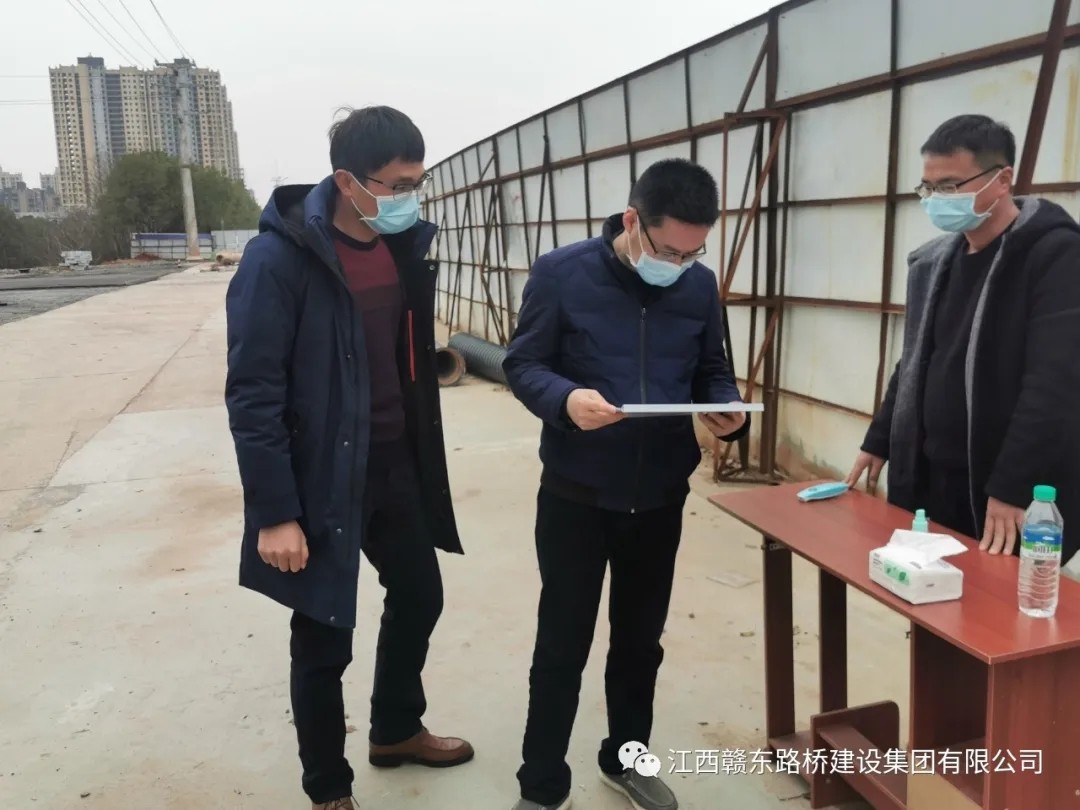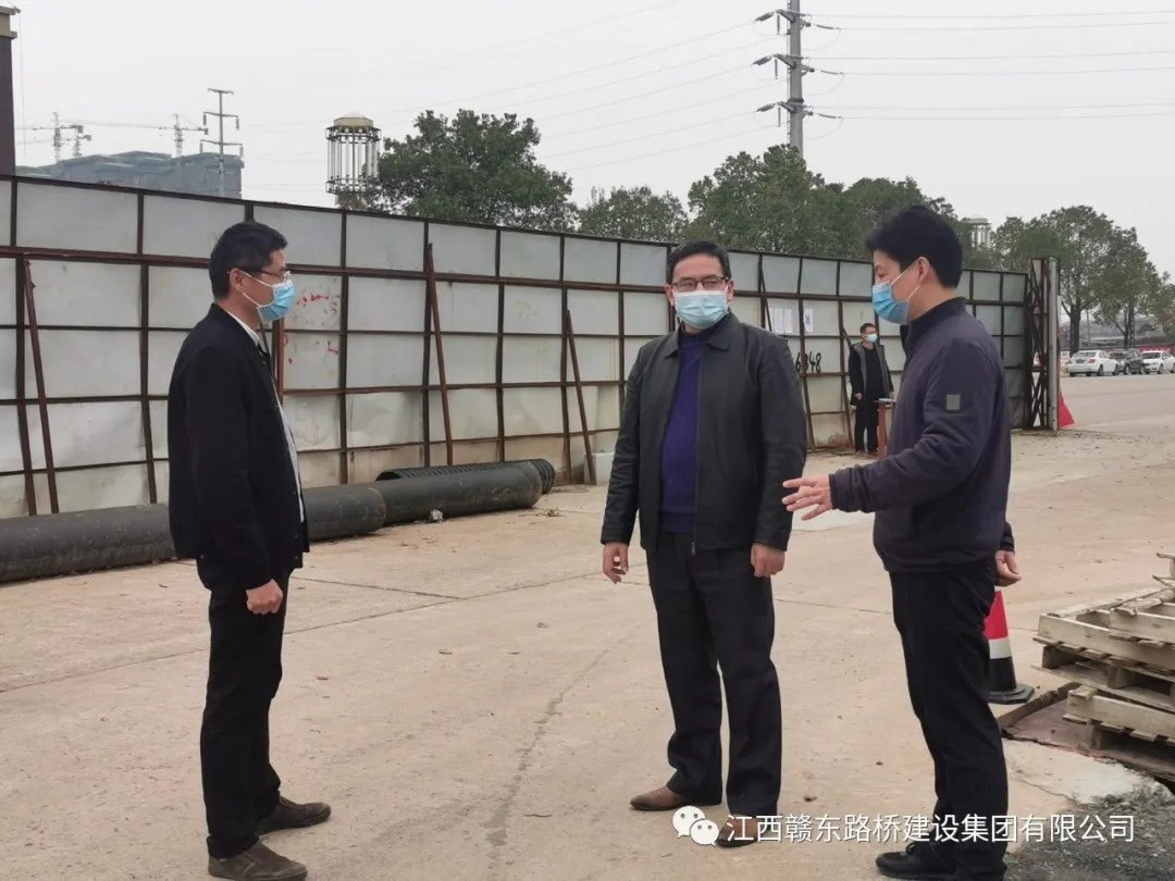 3月5日下午,驻交通局纪检监察组邹永丰组长、余清副组长在赣东路桥董事长谢小辉、总经理李永辉的陪同下,对我司市内两个在建项目复工复产疫情防控工作进行督查指导。